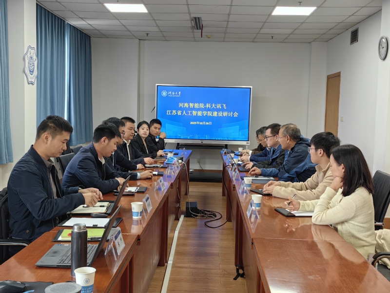 10月26日,河海大学人工智能与自动化学院与科大讯飞股份有限公司在河海大学召开江苏省省级人工智能学院建设专题研讨会。智能院院长刘小峰、副院长胡银龙及教师代表和科大讯飞副总裁陈红斌、高教事业群副总经理尹明磊等企业代表参加研讨会,双方围绕人工智能人才培养、学科建设、科研合作等议题展开深入交流,共同探讨校企合作新模式,助力人工智能教育高质量发展。